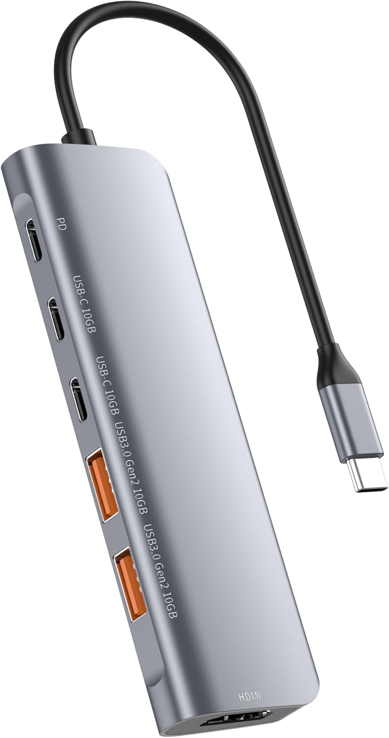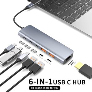 - 1. 6-in-1 USB-C Hub – Expands your laptop with 2*USB-A 3.1 (10Gbps), 2*USB-C 3.1 (10Gbps), 4K HDMI, and 100W Power Delivery (PD) for seamless connectivity. all in one sleek adapter.