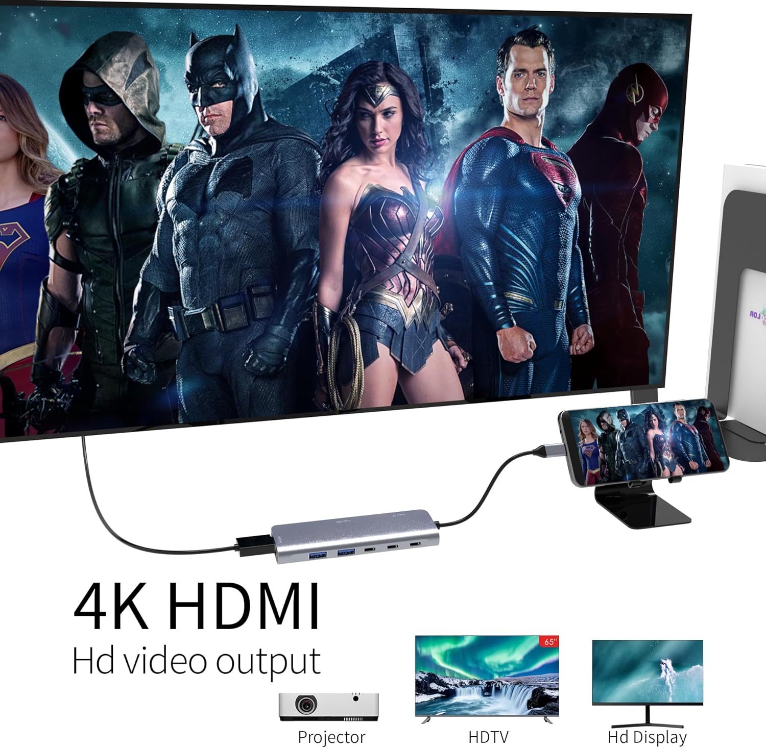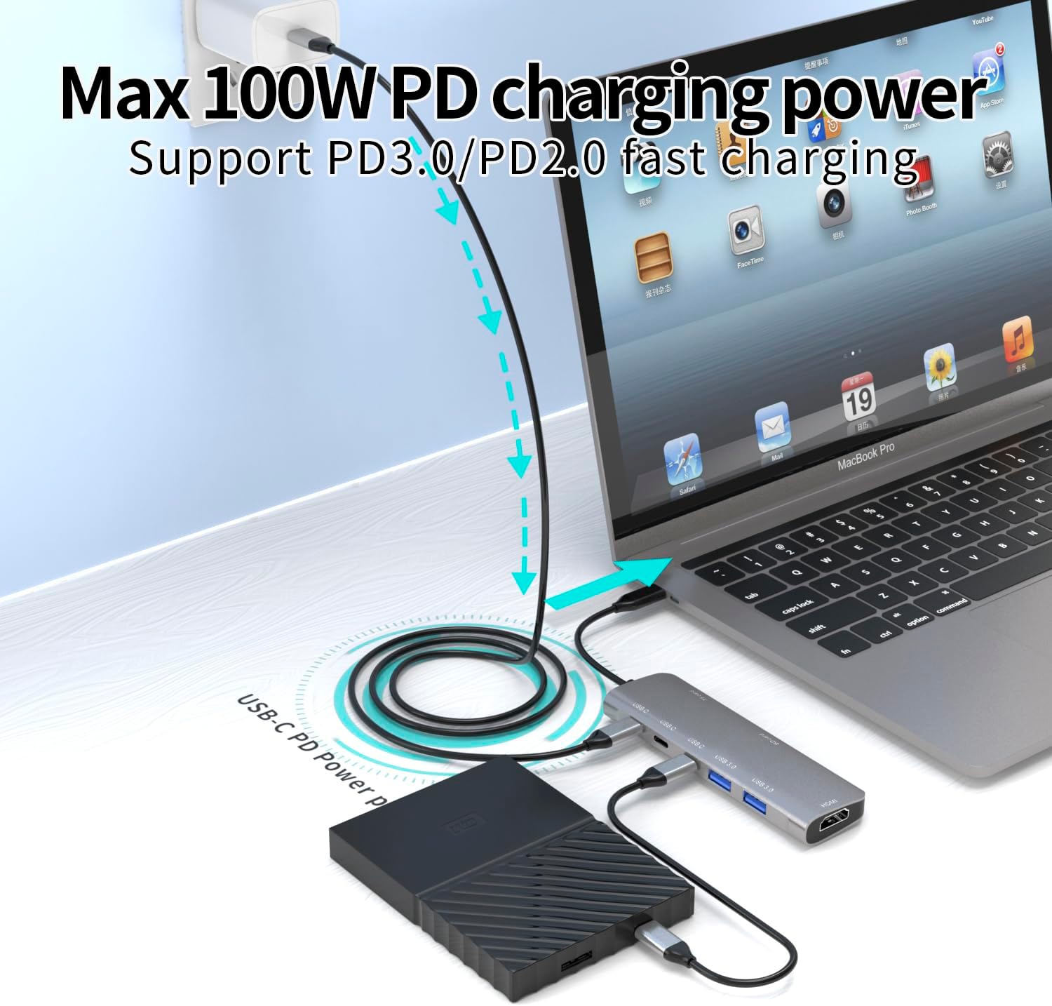 - 4. 100W Fast Charging – USB-C PD port delivers high-speed charging for laptops (MacBook, Dell, HP) and devices while using other ports.