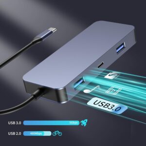 • 5Gbps High-Speed Data Transfers: Move large photo albums and files in seconds using the ultrafast USB 3.0 port (5Gbps). Dedicated USB 2.0/USB-C ports keep your keyboard, mouse, or printer connected and lag-free.